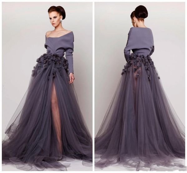 Abendkleider Engagement Girl Pageant Dresses Elegant Evening Formal Prom Dresses 2019 With Hand Made Flowers Long Sleeves Long Lace Dress Plus Size
