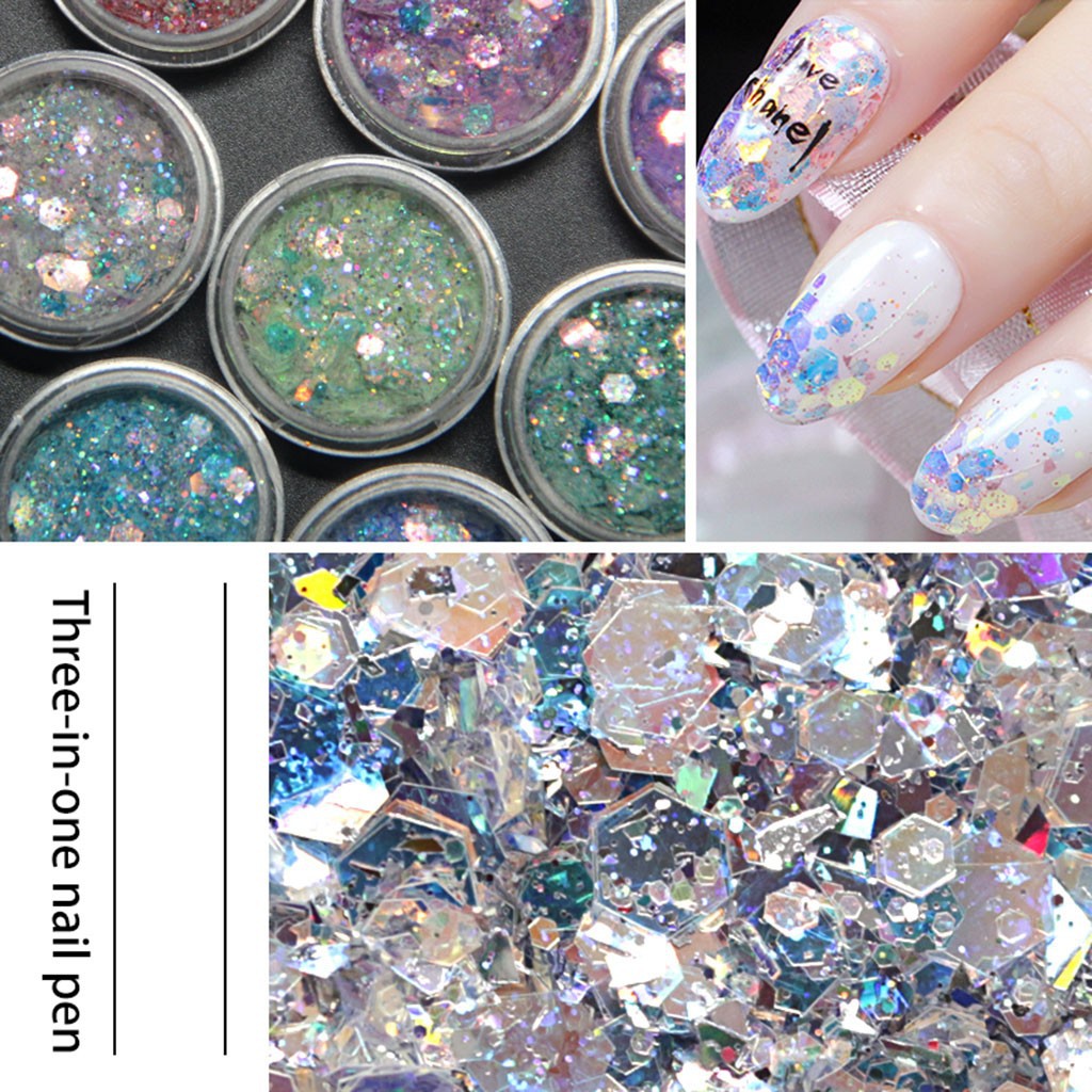 Shiny Nail Art Tips Stickers Acrylic 3d Glitter Sequins Manicure Diy Extension