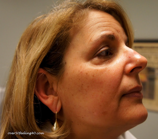 is Gigi in all of her glory and you will have to trust us...there is a dramatic difference to her gorgeous Italian complexion. Her skin is healthier, glowing, and the spots are much, much lighter. She is a rejoicing happy camper. Her regular regimen has been, since the product was sent, to use it right before bedtime. She is very pleased.