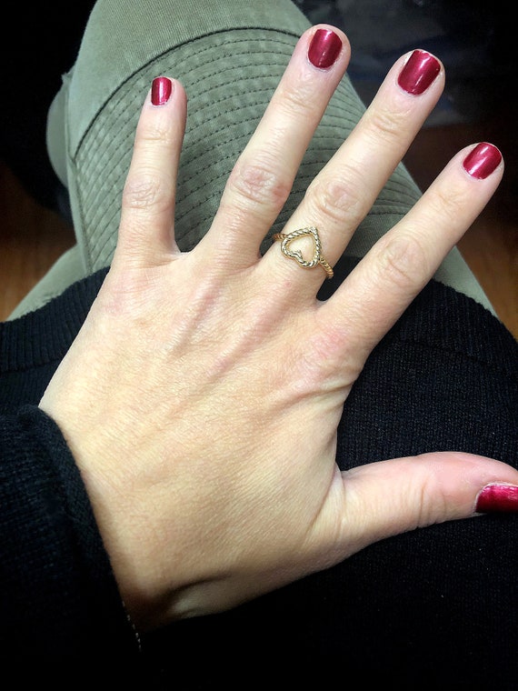 Gold Heart Ring 14k Yellow Gold Rope Design Open Heart Ring Can Be Ordered In White Gold And Rose Gold